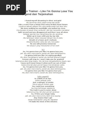 Terjemahan lirik lagu like i'm gonna lose you ~ meghan trainor feat. Arti dalam bahasa indonesialike i'm gonna lose you | meghan trainor ft. I found myself dreaming in silver and goldaku bermimpi diriku dalam emas dan . Like a scene from a movie. Lirik lagu like i'm going to lose you meghan trainor dan terjemahannya dalam arti bahasa indonesia. John legend.lengkap dengan arti lirik lagu dan maknanya ke dalam bahasa indonesia. Seperti adegan dari sebuah film I found myself dreaming of. By terjemahan lirik lagu 9:58 pm j, john legend, m, meghan trainor . Layanan mobile dari situs entertainment terbesar indonesia, .