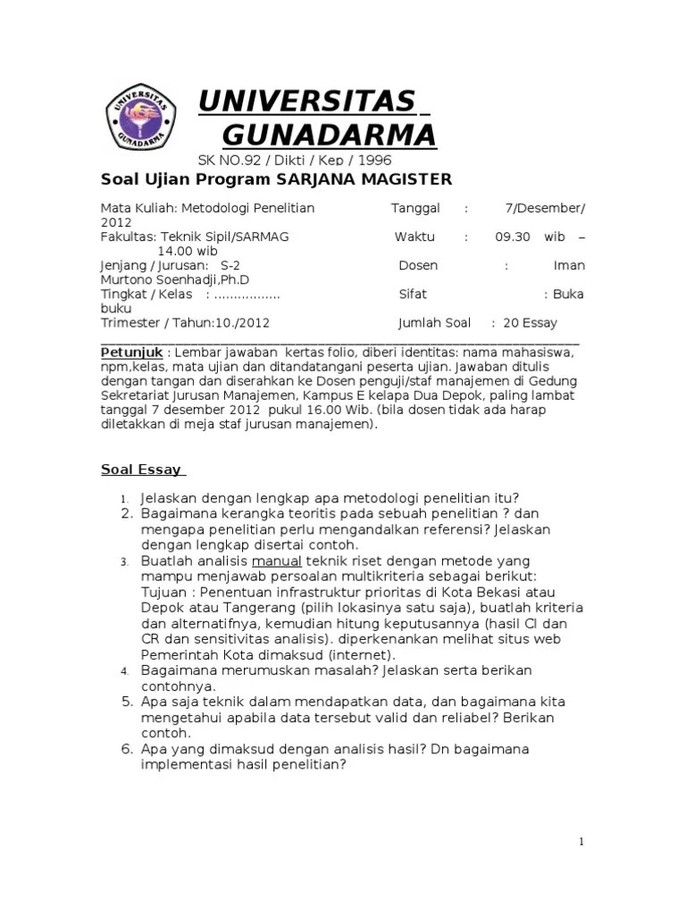 Soal Ujian Metode Penelitian Idik4007 Ut : Metode Penelitian Docx Buku Jawaban Ujian Bju Uas Take Home Exam The Semester 2020 21 1 2020 2 Nama Mahasiswa Aida Dwi Sholecha Nomor Induk Course Hero / (1) perumusan hipotesis, (2)karakteristik hipotesis yang baik, (3) jenis hipotesis, dan (4) konsekuensi pemilihanm setiap jenis hipotesis.